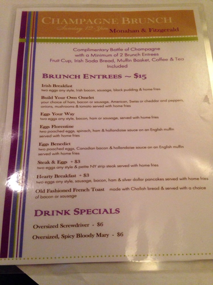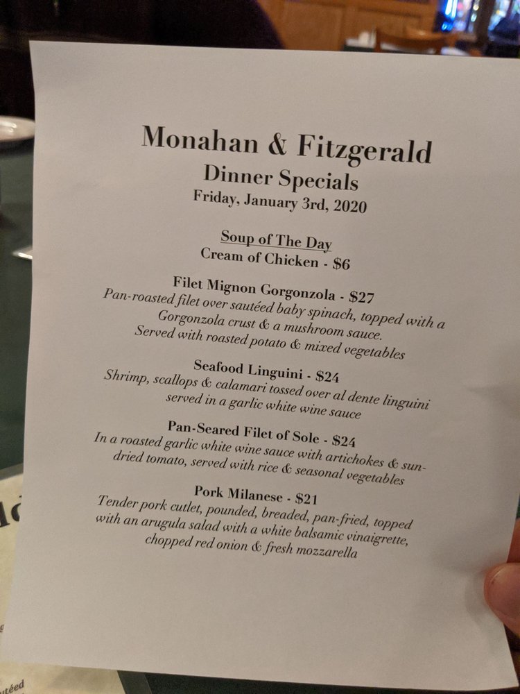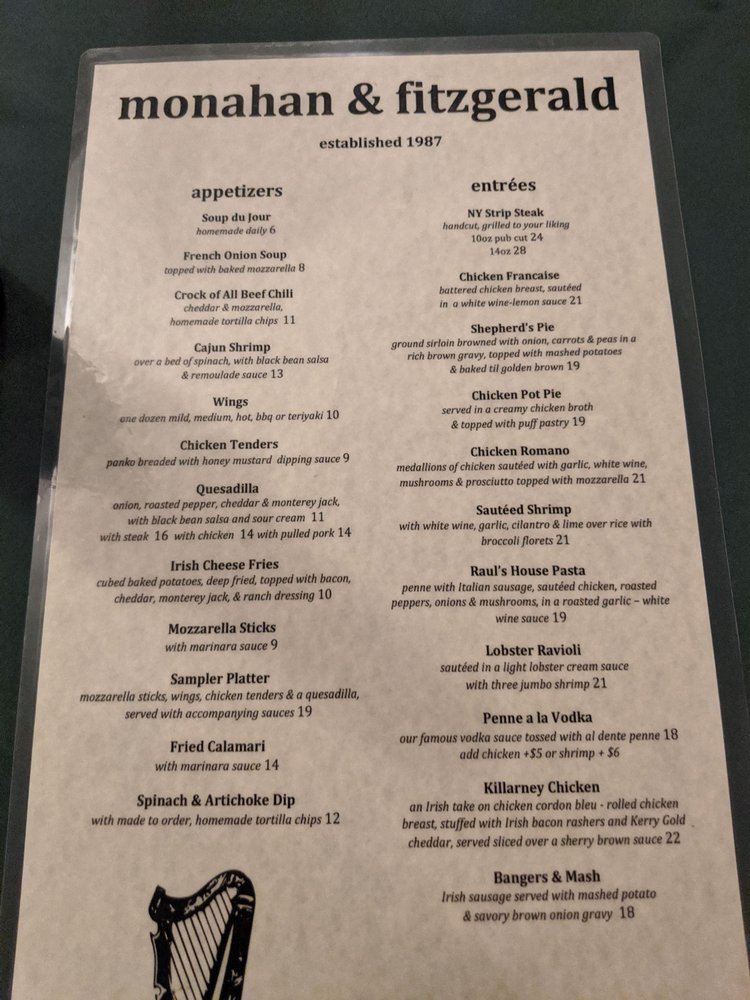 Monahan & Fitzgerald Menu